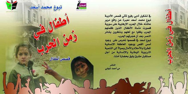 “أطفال في زمن الحرب” مجموعة قصصية للأديبة نبوغ محمد اسعد صدرت عن دار /فلستينا/ للطباعة والنشر والتوزيع تباينت في وسائل مكوناتها الأدبية واختلفت في مواضيعها بين الاجتماعي التربوي وبين الألم الذي تحمله الأطفال جراء الحرب الإرهابية على سورية.