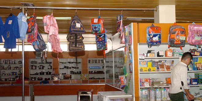 بمناسبة حلول العام الدراسي الجديد افتتح اليوم معرض للوازم المدرسية في مجمع المزرعة الاستهلاكي بالسويداء.