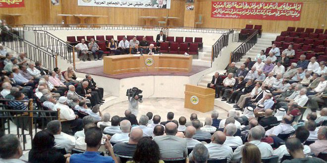 حضر الملتقى محافظ السويداء عامر العشي وامين فرع السويداء لحزب البعث العربي الاشتراكي فوزات شقير ورئيس مجلس المحافظة عصام الحسين وعدد من
