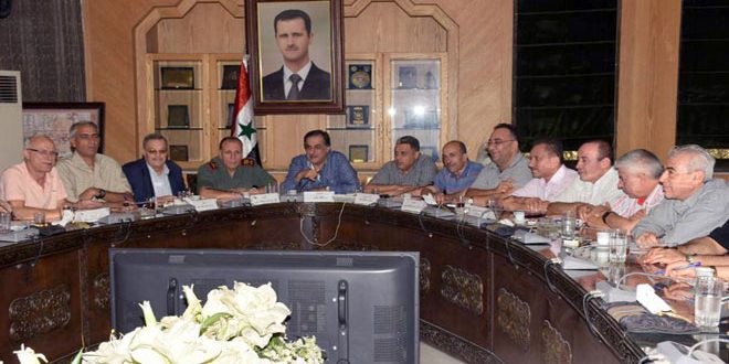 بحث محافظ حلب حسين دياب مع مديري المؤسسات والدوائر الخدمية بحلب الإجراءات المتخذة استعدادا لعيد الأضحى المبارك لتوفير الخدمات الضرورية للمواطنين.
