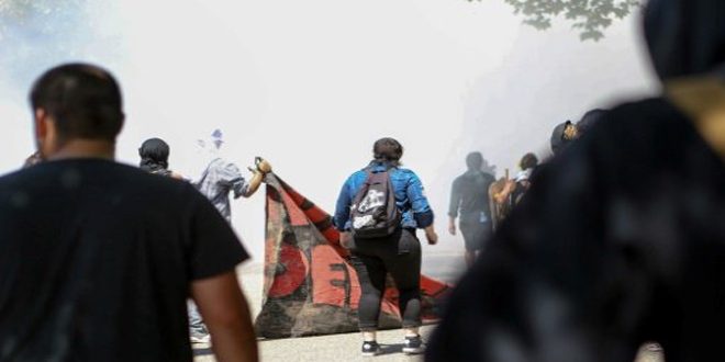 وذكرت ا ف ب أن الصدامات وقعت في منتزه لوثر كينغ جونيور الذي أغلق أمام العامة حيث قام المتظاهرون المناهضون لترامب بمحاصرة مؤيديه مرددين هتافات “لا لترامب” و”لا لأميركا فاشية” و”أيها النازيون عودوا إلى منازلكم”.