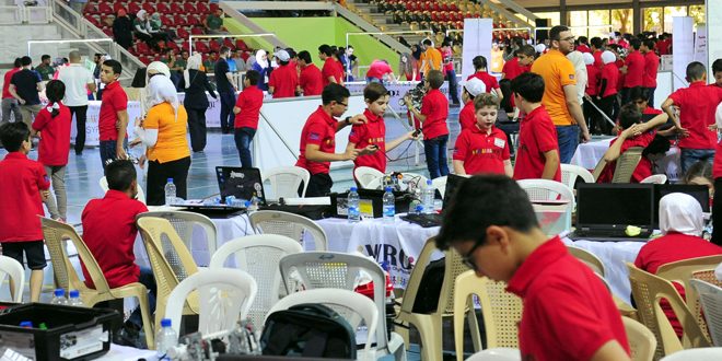 ويتأهل الفائزون الأوائل في المسابقة التي تستمر يومي الاثنين والثلاثاء إلى نهائيات أولمبياد الروبوت العالمي الذي سيقام في كوستاريكا نهاية تشرين الثاني القادم.