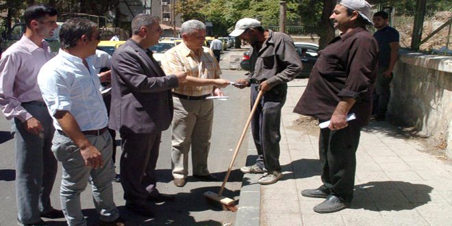 كرمت محافظة السويداء اليوم 75 عامل نظافة في مواقع عملهم في مدينة السويداء بمناسبة عيد الأضحى المبارك حيث تم توزيع سلل غذائية ومبالغ مالية للعمال المكرمين.