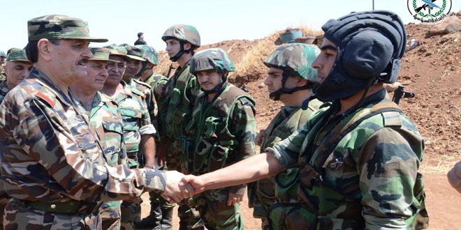 بتوجيه من السيد الرئيس الفريق بشار الأسد القائد العام للجيش والقوات المسلحة وبمناسبة حلول عيد الأضحى المبارك قام العماد فهد جاسم الفريج نائب القائد العام للجيش والقوات المسلحة نائب رئيس مجلس الوزراء وزير الدفاع بزيارة ميدانية لإحدى الوحدات المقاتلة بريف درعا التقى خلالها المقاتلين في مواقعهم وهنأهم بالعيد ونقل إليهم محبة السيد الرئيس الفريق بشار الأسد واعتزازه ببطولاتهم وتضحياتهم وتقديره للجهود الكبيرة التي يبذلونها في الذود عن الوطن وصون عزته وكرامته.
