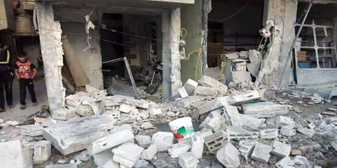وتعرضت مدينة سلمية خلال الفترة الماضية لاعتداءات إرهابية بالقذائف تسببت بارتقاء العديد من الشهداء ووقوع دمار كبير في المنازل والبنى التحتية.