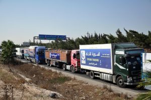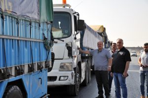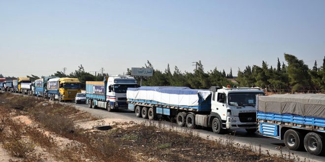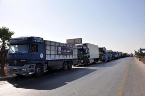 انطلاق أول قافلة مواد غذائية من حمص إلى الأهالي في دير الزور