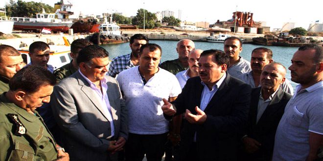 وبعد الاجتماع قام الوزير بجولة في مرفأ طرطوس تفقد خلالها سير العمل بالمرفأ واطلع على كيفية التعامل مع المستوردين وعلى عمل الكشاف الجمركي والأنظمة الالكترونية .