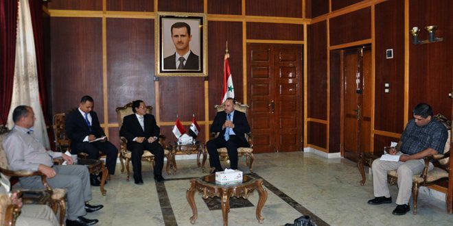 قدم محافظ حماة الدكتور محمد الحزوري خلال لقائه السفير الاندونيسي في سورية جوكو هاريانتو اليوم عرضا عن الموقع الزراعي والصناعي والتجاري والسياحي الذي تشغله المحافظة وما تتميز به من تناغم وانسجام اجتماعي وتنوع بيئي جعلها تحظى بأهمية إنتاجية واستراتيجية.
