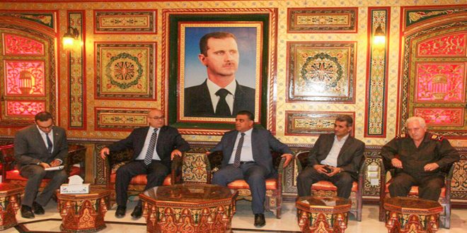 وعرض المحافظ واقع المحافظة الاقتصادي والزراعي والسياحي مشيرا إلى العمل على تقديم الخدمات اللازمة للوافدين القادمين إليها من أبناء المحافظات الأخرى جراء الاعتداءات الإرهابية ومؤكدا فشل كل المخططات التي كانت ترسم لتدمير سورية.