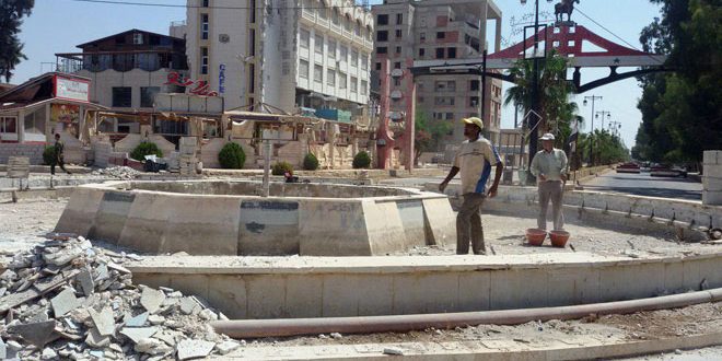 أعاد مجلس مدينة درعا اليوم تأهيل دوار البريد وسط المدينة بعد تعرضه سابقا لاعتداءات ارهابية ما تسبب في الحاق أضرار به.