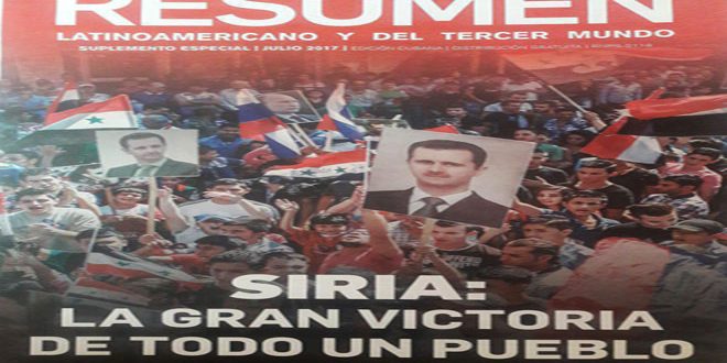 أصدرت مجلة روسومين “الموجز” التي تصدر في كوبا عدداً خاصاً عن سورية والانتصارات الأخيرة التي حققها الجيش العربي السوري في حربه على الإرهاب.