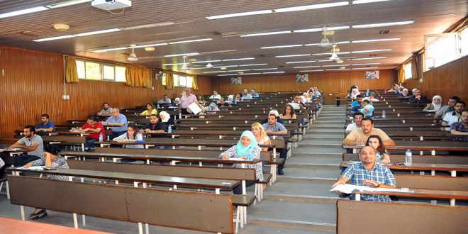 تفقد وزير المالية الدكتور مأمون حمدان رئيس مجلس المحاسبة والتدقيق سير الامتحان التحريري السنوي للمتقدمين لنيل شهادة محاسب قانوني وذلك في كلية الاقتصاد بجامعة دمشق.