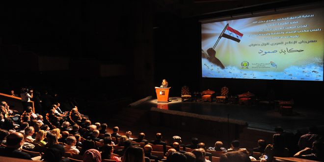 تحت عنوان “حكاية صمود” انطلقت اليوم فعاليات مهرجان الإعلام السوري الأول الذي يقيمه اتحاد الصحفيين في دار الأسد للثقافة والفنون بدمشق بمشاركة شخصيات إعلامية عربية وأجنبية ووسائل الاعلام السورية من القطاعين العام والخاص.