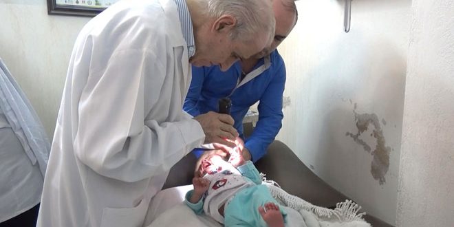 على بعد كيلومترات قليلة من دمشق وفي عيادة صغيرة بمدينة جرمانا يواصل الطبيب إحسان عز الدين رسالة بدأها منذ نصف قرن في خدمة المرضى والمحتاجين ووسط ضغط المراجعين الهائل يجد طبيب الفقراء راحته النفسية.