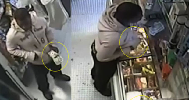 وقالت الشرطة إن الرجل طلب أموالا وسجائر وأظهر شريط المراقبة أنه هرب بعد ذلك على دراجته.