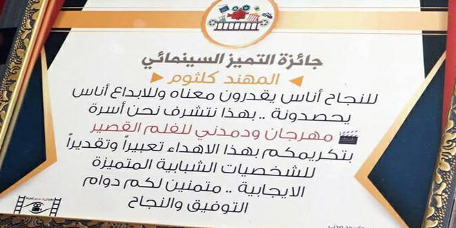 وقال كلثوم: “إننا كفنانين ومخرجين سوريين نحصل على جوائز عربية وعالمية في ظل الحرب الإرهاربية التي تشن على سورية منذ سبع سنوات ونحقق الانتصارات على جميع الصعد بالرغم من الحصار الاقتصادي والثقافي والسياسي”.