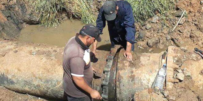أعلنت مؤسسة مياه درعا أنها ستنتهي من أعمال اصلاح خط الدفع الخاص بالمشروع المغذي لمدينة درعا مساء اليوم وهو ما سيسمح لها باستئناف