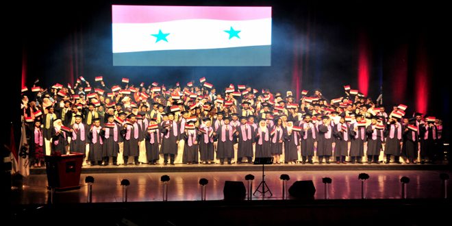 كرمت الجامعة السورية الخاصة اليوم الدفعة التاسعة من طلابها الخريجين من كليات الطب البشري والأسنان والصيدلة والهندسة وإدارة الأعمال للعام الدراسي 2016-2017 خلال حفل خاص أقيم على مسرح الأوبرا بدار الأسد للثقافة والفنون بدمشق.