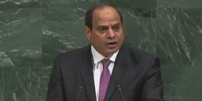وتابع السيسي “لا يمكن تصور وجود مستقبل للنظام الإقليمي أو العالمي من دون مواجهة شاملة وحاسمة مع الإرهاب تقضي عليه وتستأصل أسبابه وجذوره وتواجه كل من يدعمه أو يموله أو يوفر له منابر سياسية أو إعلامية” معتبرا أن ذلك يشكل مسؤولية مشتركة للمجتمع الدولي.