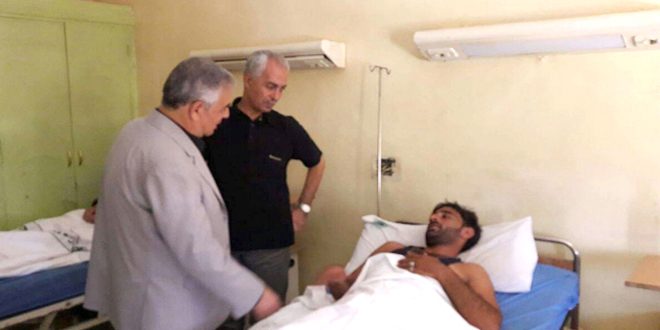 وزار محافظ دير الزور محمد ابراهيم سمره جرحى الاعتداءات في مشفيي الأسد وأحمد طه هويدي بالمدينة.