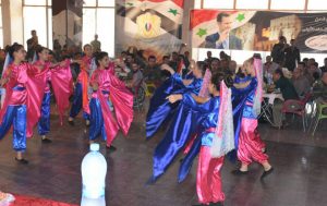 بعد ذلك قدمت مجموعة أطفال عدة رقصات ودبكات شعبية وأغاني وطنية.