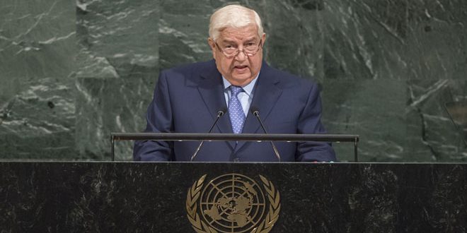 وأضاف المعلم: إن ما يسمى “التحالف الدولي” الذي تقوده الولايات المتحدة والذي أنشىء قبل ثلاث سنوات تحت عنوان محاربة التنظيمات الإرهابية كـ”داعش” وغيره قتل من المواطنين السوريين الأبرياء وأغلبهم من النساء والأطفال أضعاف ما قتل من الإرهابيين ودمر العديد من البنى التحتية والمنشآت الحيوية التي بناها السوريون بعرقهم واستخدم القنابل الفوسفورية وغيرها من الأسلحة المحرمة دوليا أمام مرأى العالم أجمع.