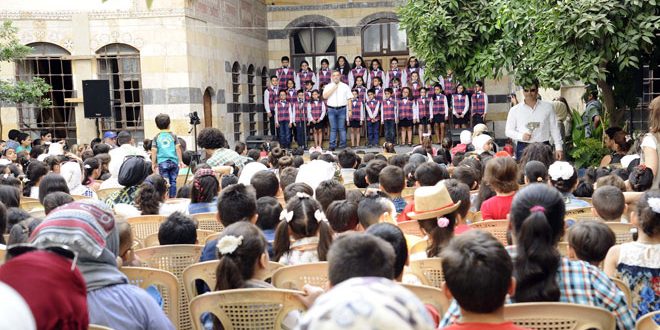 أطفال جوقة ألوان لتمتزج مع النارنج الدمشقي ضمن فعالية ثقافية في بيت نظام بدمشق القديمة.