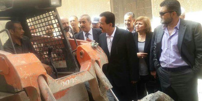 اطلع محافظ القنيطرة أحمد شيخ عبدالقادر اليوم على سير أعمال إصلاح وترميم البنى التحتية لشبكات وآبار مياه الشرب والأبنية المدرسية والمركز الصحي وإزالة الأنقاض وترحيلها في تجمع السبينة للنازحين بريف دمشق تحضيرا لاستقبال الأهالي الراغبين بالعودة إلى منازلهم في القطاع الشمالي للتجمع.
