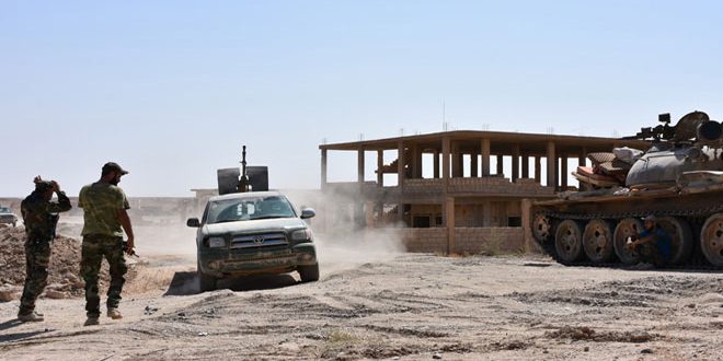 أعلن مصدر عسكري اجتثاث آخر تجمعات إرهابيي “داعش” من مساحات جديدة في منطقة جب الجراح وذلك في إنجاز جديد للجيش العربي السوري في عملياته المتواصلة ضد الإرهاب التكفيري بريف حمص الشرقي.