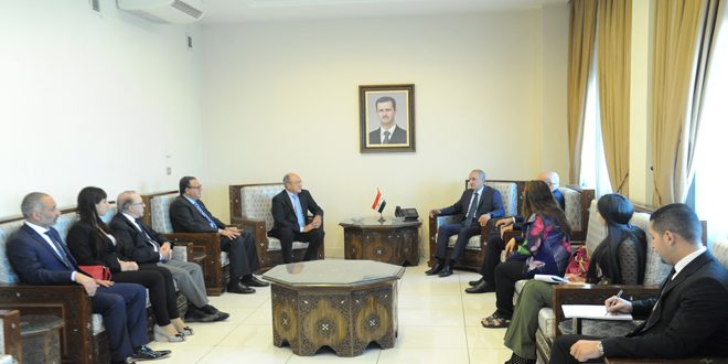 وقدم الدكتور سوسان للوفد الضيف عرضا عن آخر تطورات العدوان الإرهابي على سورية مشيرا إلى أن مستجدات مواقف بعض القوى الإقليمية والدولية كشفت بوضوح حملات التضليل والزيف إزاء ما يحصل في سورية وأثبتت صدقية الرؤية السورية بأن ما تعرضت له سورية والمنطقة العربية يهدف أساسا إلى إضعاف الموقف العربي وتمكين “إسرائيل” وقوى الهيمنة والغطرسة من إحكام سيطرتها على المنطقة ونهب ثرواتها.