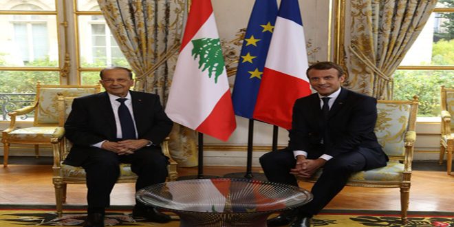 وتوجه ماكرون إلى عون بالقول: ” نريد العمل معكم ومع الأمم المتحدة لحل المشكلة المرتبطة باستقرار وأمن المنطقة ” مشيرا إلى أن لبنان يحمل عبئا كبيرا ويتعرض للإرهاب.