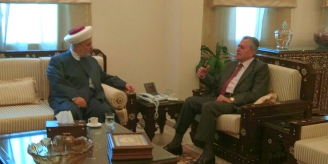 ونوه الشيخ الجعيد في تصريح بعد اللقاء بالتطورات الميدانية في سورية واندحار التنظيمات الإرهابية أمام الجيش العربي السوري وحلفائه.