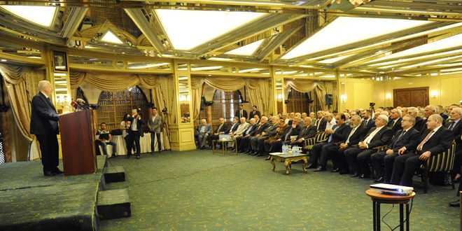 من جانبه أشار الأمين العام لمؤتمر الأحزاب العربية قاسم صالح إلى أن سورية حققت انتصارات باهرة “ما كانت لتحصل لولا تضحيات الجيش العربي السوري وحلفائه وحكمة القيادة السورية والتفاف الشعب السوري حولها” لافتاً إلى الانتصارات التي حققها أيضاً كل من الجيشين العراقي واللبناني في طرد الإرهابيين من العديد من المناطق.