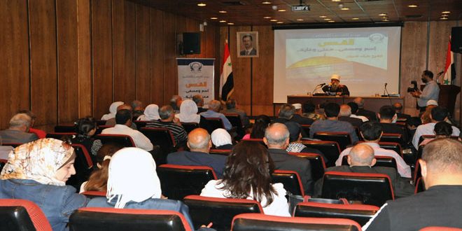 نظمت مؤسسة القدس الدولية سورية في يوم القدس الثقافي محاضرة حملت عنوان “القدس..اسم ومسمى.. معنى وغاية” في مكتبة الأسد بدمشق ألقاها الباحث الشيخ عارف شعبان.