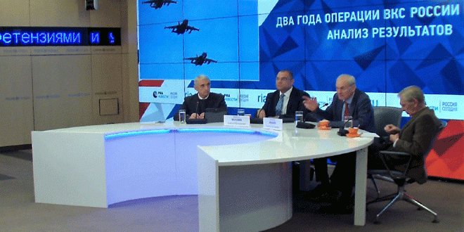 وأشار المشاركون في مؤتمر صحفي عقد في موسكو اليوم بمناسبة مرور عامين على بدء العملية العسكرية الروسية ضد الإرهابيين في سورية إلى أن الأمريكيين لم يفعلوا شيئا ضد تنظيم (داعش) وغيره من التنظيمات الإرهابية بل هناك تنسيق كبير بينهم بينما تقوم روسيا بالتصدي لعملية تدمير دول المنطقة بقيادة الولايات المتحدة وحلفائها.