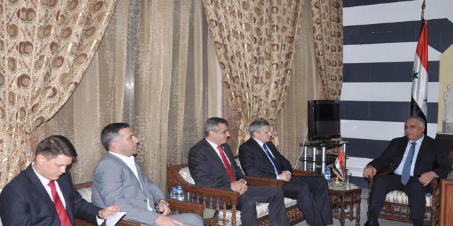 بحث محافظ حمص طلال البرازي مع سفير جمهورية بيلاروس بدمشق أليكساندر بونوماريف اليوم إمكانيات التعاون في مجالات البناء وإعادة الإعمار.
