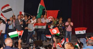 وأكدت الهيئة الوطنية والحشد الجماهيري الذي احتشد في حفل الاختتام الذي جرى أمس ضرورة الإسراع بإعادة العلاقات الدبلوماسية بين سورية وتونس لتكون موازية للعلاقات بين الشعبين معبرين عن دعمهم لسورية شعبا وقيادة في وجه الحرب التي تخوضها منذ عدة أعوام والهادفة للنيل من سيادتها الوطنية وحرية قرارها السياسي ولمعاقبتها على دعمها للمقاومة ودعم القضية الفلسطينية ومقاومة التطبيع.