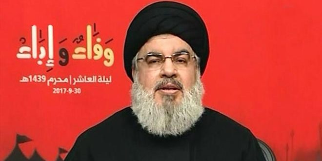 وفي كلمة له الليلة في ذكرى عاشوراء أوضح السيد نصر الله أن محاولات “داعش” بعدما حوصر في المثلث الأخير في الجزء المتبقي من محافظة دير الزور القيام بهجمات متفرقة لاستعادة الأرض والميدان لن تجدي نفعا لأن قرار حسم المعركة في سورية محسوم ومنته والأمر يحتاج بعض الوقت والوسيلة المثلى لذلك هي مواصلة العمل الهجومي لافتا إلى أن “إسرائيل” قلقة جدا لأن “داعش” والجماعات التكفيرية تهزم.