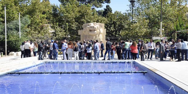 بعد ترميمه.. تمثال أسداللات التدمري يقف منتصبا في ساحة المتحف الوطني