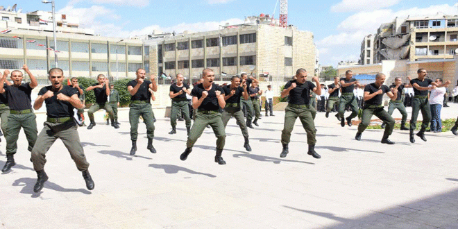 تخرجت في قوى الأمن الداخلي اليوم دورة جديدة من ضباط الصف والأفراد خلال حفل أقامته قيادة شرطة محافظة حلب في مدرسة الشرطة بحي سيف الدولة.
