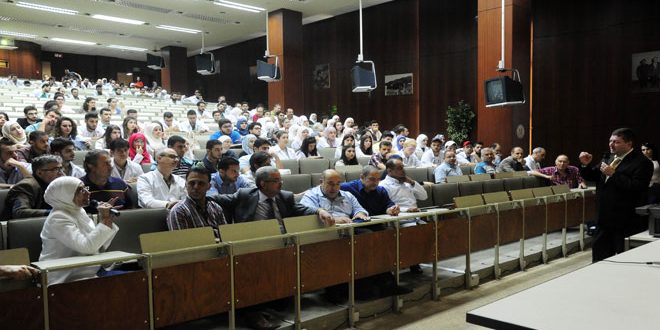 أول عملية جراحة قلب تنظيرية على مستوى سورية والتي أجراها فريق طبي من مشفى الأسد الجامعي الشهر الماضي كانت محور الجلسة العلمية الصباحية اليوم لطلاب من كلية الطب.