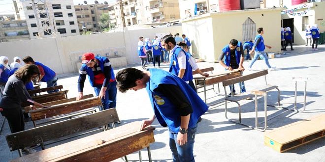 بمناسبة عيد تأسيسها التاسع والأربعين اطلقت منظمة اتحاد شبيبة الثورة بالتعاون مع وزارة التربية اليوم حملة تطوعية في المحافظات تحت عنوان “مدرستي بيتي” تتضمن تنظيف عدد من المدارس وإعادة تأهيل وترميم المقاعد فيها.