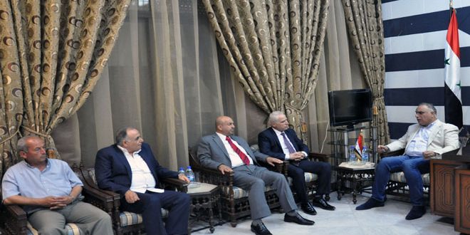 بحث محافظ حمص طلال البرازي مع مدير عام المؤسسة العربية للإعلان وسيم حمزة سبل تفعيل دور المؤسسة في دعم الفعاليات الاقتصادية والتجارية والصناعية.