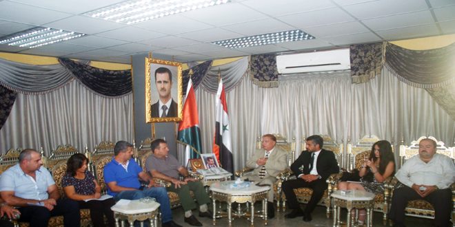 بحث محافظ اللاذقية إبراهيم خضر السالم اليوم مع ممثل الجمعية الإمبراطورية الأرثوذكسية الفلسطينية في سورية الدكتور مطانيوس بشور إحداث مشاريع استثمارية ذات طابع اقتصادي تشاركي غير ربحي تهدف لخلق فرص عمل للشباب السوري والتعاون في مجال الصحة والتربية والتعليم والعلوم المعلوماتية والفكرية.