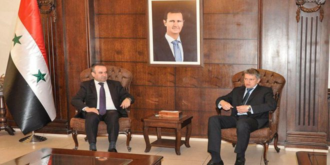 بحث وزير الإدارة المحلية والبيئة المهندس حسين مخلوف مع سفير جمهورية بيلاروس في دمشق سبل تعزيز التعاون المشترك بين البلدين في المجالين الإغاثي والإنساني.