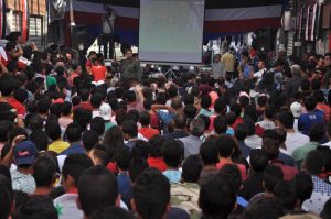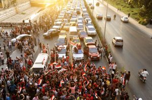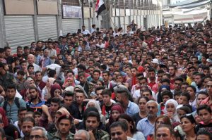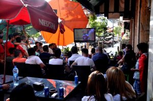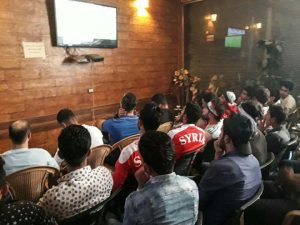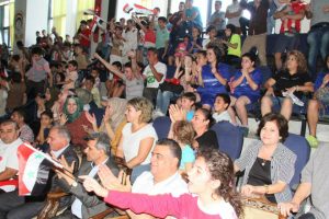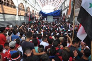 تابعت جماهير غفيرة مباراة منتخب سورية مع نظيره الاسترالي عبر شاشات كبيرة نصبت في ساحات وشوارع عدد من المحافظات.