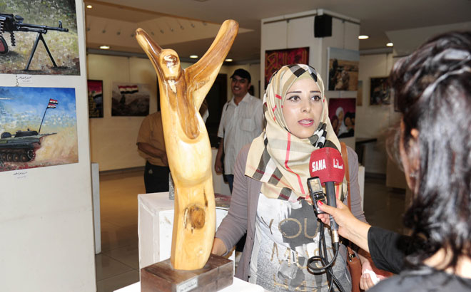 وأضاف العماد شوا “المعرض يبرهن على أن فناني سورية مواكبون لبطولات القوات المسلحة ورافد أساسي لها فهم أيضا جنود في الميدان وفي معركتنا ضد الإرهاب وأننا بمثل هذه اللحمة واثقون بأن النصر سيتحقق على يد أبطال جيشنا وبمساندة شعبنا ووقوفه إلى جانبه”.