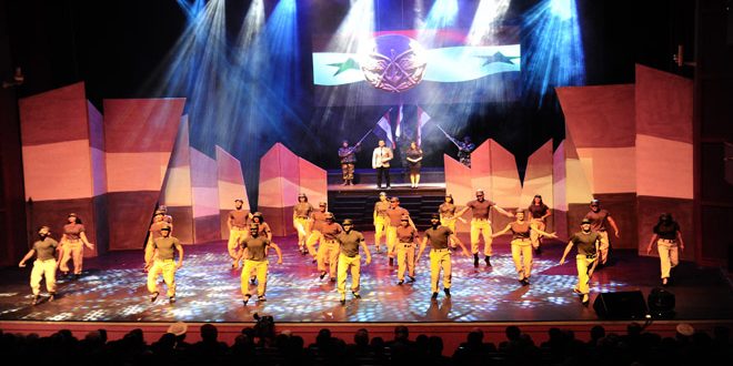 بمناسبة الذكرى الرابعة والأربعين لحرب تشرين التحريرية قدمت الجمعية السورية لدعم أسر الشهداء “تموز” على مسرح الأوبرا بدار الأسد للثقافة والفنون مساء اليوم العرض المسرحي الفني “النصر ساعة صبر” بحضور ورعاية نائب القائد العام للجيش والقوات المسلحة وزير الدفاع العماد فهد جاسم الفريج وشخصيات رسمية وفنانين وإعلاميين وأبناء الشهداء.