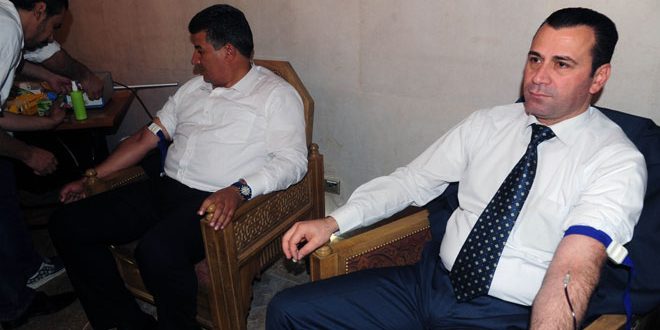 نظم الاتحاد الوطني لطلبة سورية اليوم حملة تبرع بالدم ضمن فعاليات الدورة التنظيمية المركزية دعما لجرحى الجيش والقوات المسلحة وتقديرا لتضحياتهم في سبيل الوطن وذلك في جامعة دمشق.
