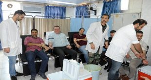 تقديرا لتضحياتهم في الدفاع عن الوطن وبمناسبة الذكرى ال44 لحرب تشرين التحريرية نظمت شعبة المدينة الأولى لحزب البعث العربي الاشتراكي اليوم حملة تبرع بالدم دعما لجرحى الجيش العربي السوري بمشاركة أكثر من 300 متبرع وذلك في مقر الشعبة بمدينة حماة.